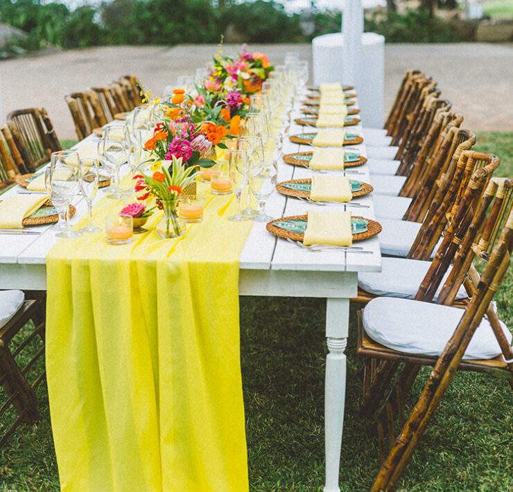 Oh my gosh I love the way this wedding looks. What a cool yellow color and her dress was amazing!